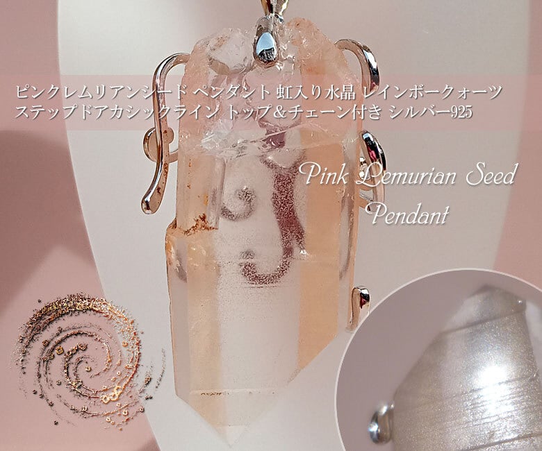 091 ピンクレムリアンシード ペンダント 虹入り水晶 レインボークォーツ ステップドアカシックライン トップ&チェーン付き シルバー925 ポイント | レムリアンシードクリスタルなら「レムリアの星」BASE店