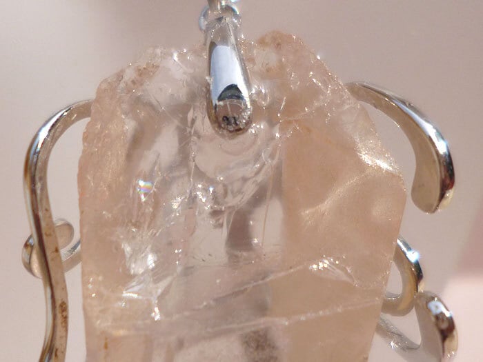 「ペンダントの内部に光が当たると、息をのむほど美しい七色の虹が瞬きます。それは、まさしく『レインボークォーツ』の証。虹は古くから幸運の象徴、そして希望の架け橋とされています。この小さな虹は、困難な状況を乗り越える力や、ネガティブな感情をポジティブなものに変えるサポートをしてくれるでしょう。あなたの未来を明るく照らし、願いを叶える力を増幅させます。」