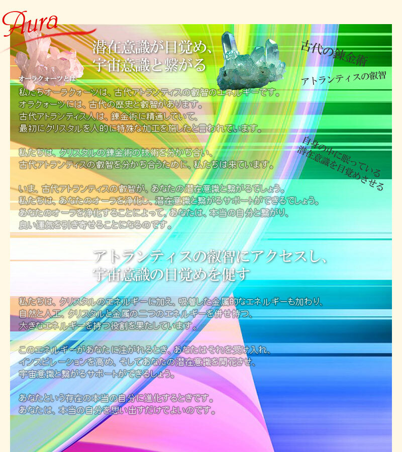 オーラクォーツは、エネルギーの調和をサポートし、心の平穏をもたらすとされています。このペンダントを身につけることで、気持ちがリフレッシュされ、日々のストレスから解放されるかもしれません。