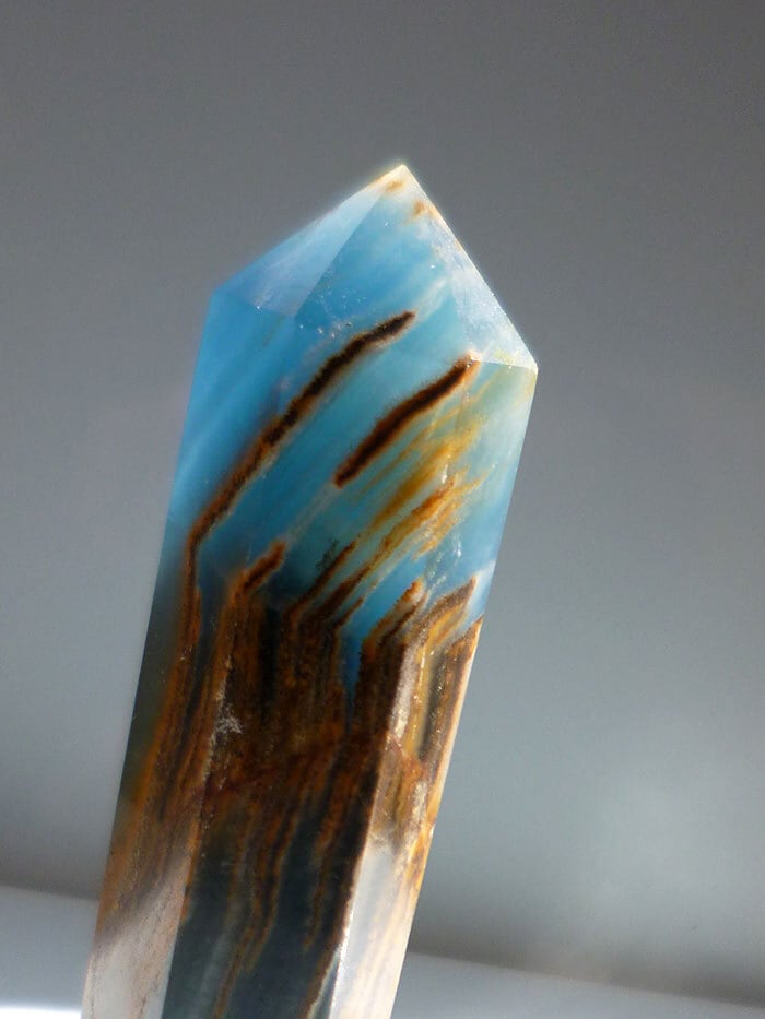 033 レムリアの海と大地 レムリアン アクアティン カルサイト オベリスク水晶 磨き ポイント