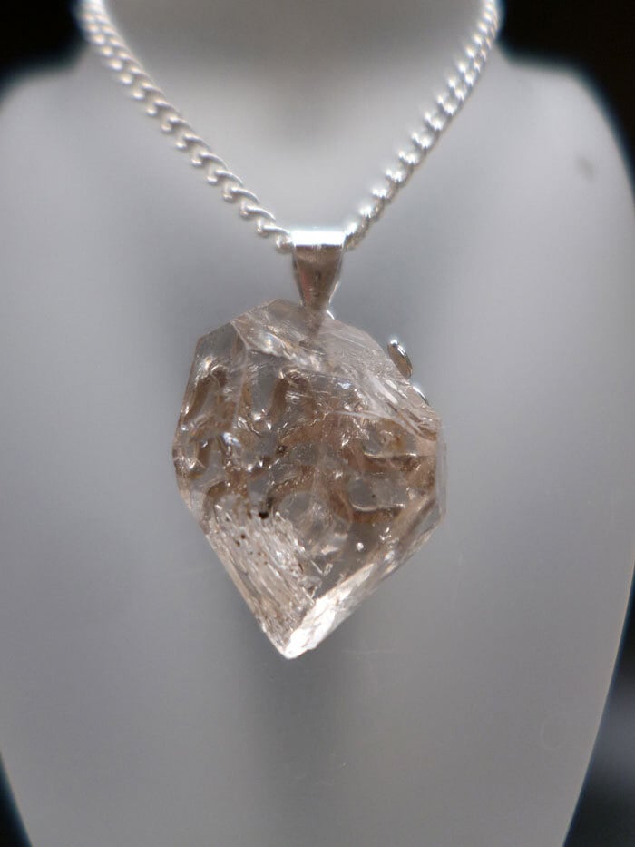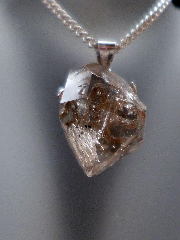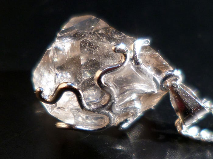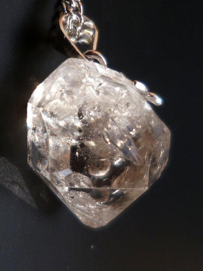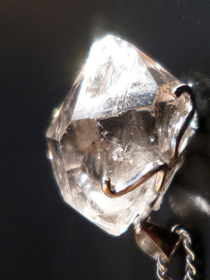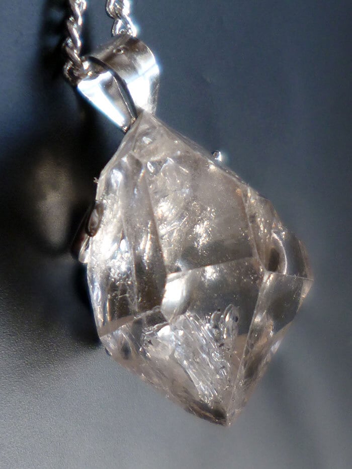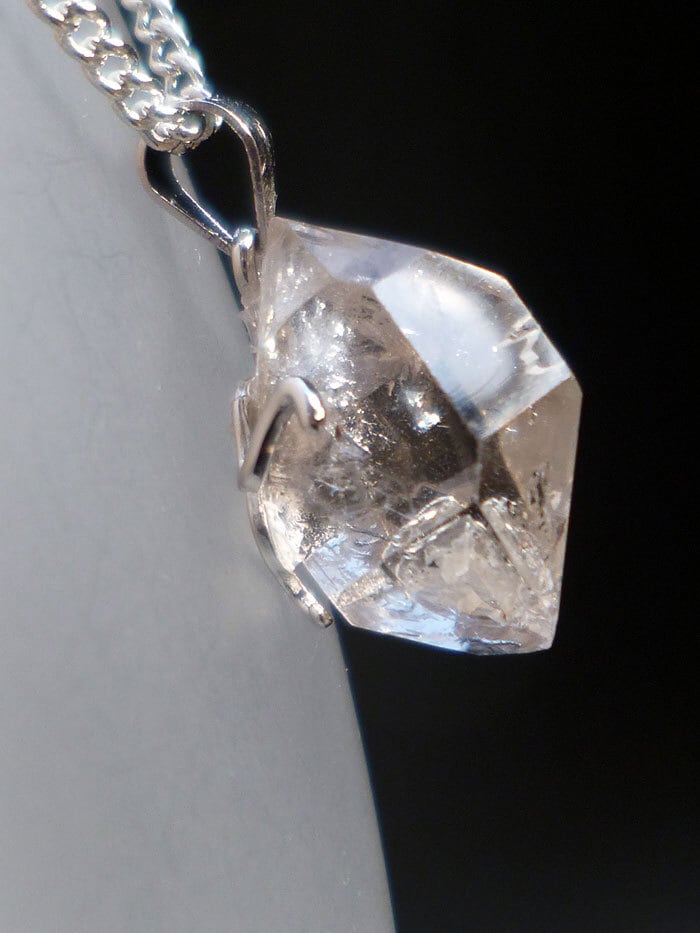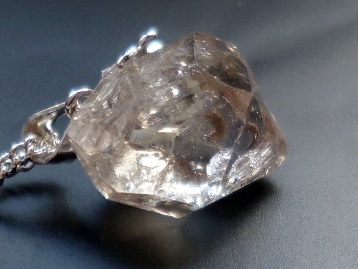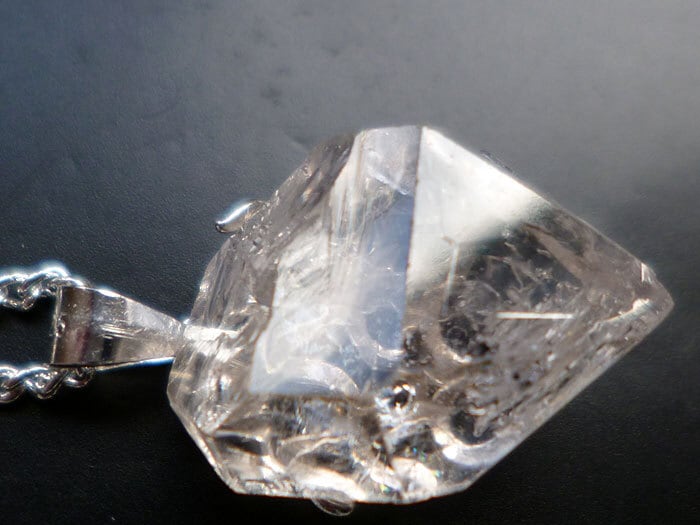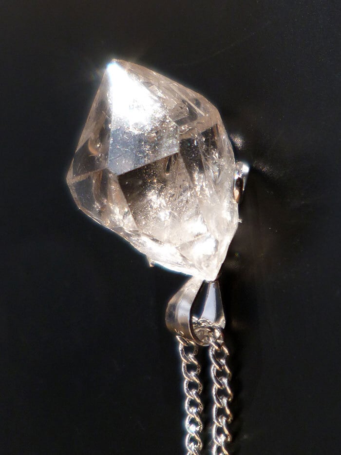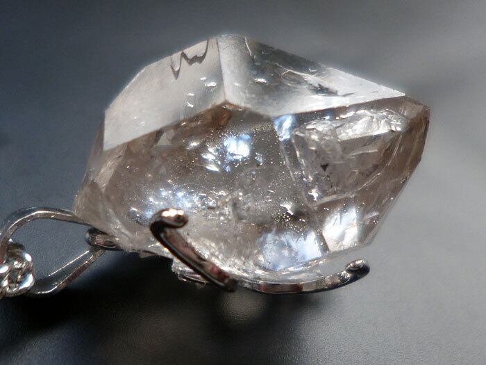 001 ハーキマーダイヤモンド ハーキマークォーツ ペンダント レインボークォーツ 虹入り水晶 ダブルポイント シルバー925 トップ&チェーン付き
