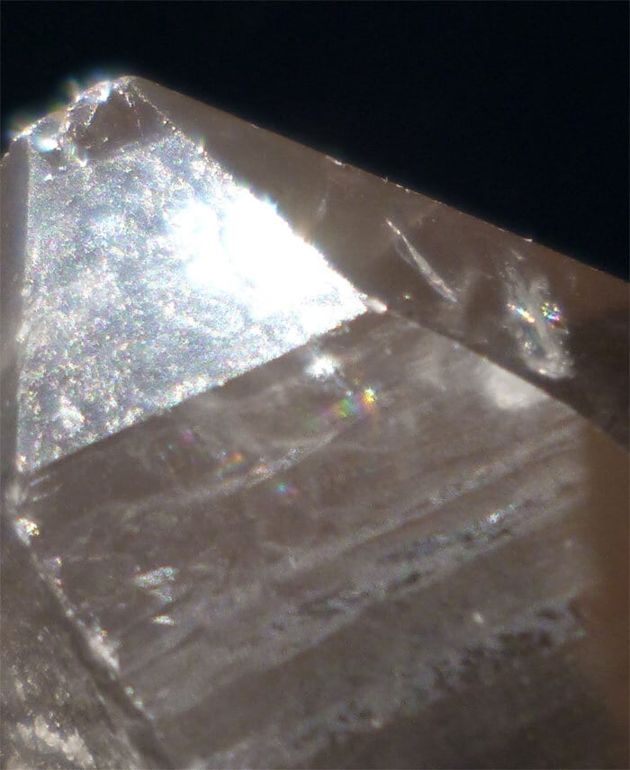 クリスタル内部の微細なクラックに光が反射して生まれる七色の虹は、希望、喜び、そして奇跡の象徴です。ネガティブな感情を打ち払い、持ち主の人生に彩りを与え、ポジティブな変化を引き寄せます。