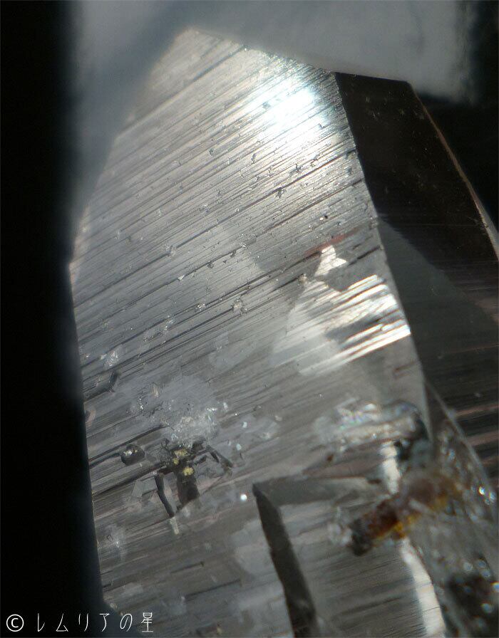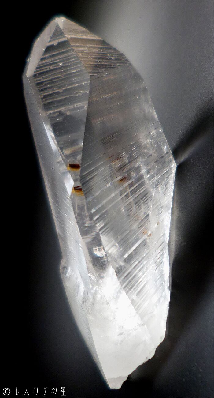 側面にはっきりと刻まれたレムリアンリッジ(バーコードのような条線)。それは、数億年前の古代レムリア文明の叡智がプログラミングされた証です。このクリスタルを指でなぞる時、あなたは遥か昔の地球の記憶、そして高次元の存在からのメッセージを受け取ることになるでしょう。瞑想や自己探求の旅において、あなたのインスピレーションを無限に広げます。