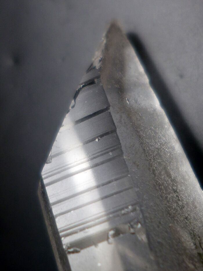 「そして、このクリスタルに刻まれた特別な『ステップドアカシックライン』。それは、まるで宇宙の図書館への階段のように、あなたを導きます。アカシックレコードとは、この宇宙のすべての情報が記録されている場所。このラインに意識を集中することで、過去生からの学びや、あなたが抱える課題の根源、そして未来への可能性にアクセスする手助けをしてくれるでしょう。魂の成長と深い洞察を求めるあなたに、このラインは強力なサポートとなります。